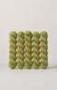 Most of our yarn comes in hank form since it’s more suitable for transport and storage. They can get a bit twisted, or ’tangled’-looking in the process for several reasons, the main one being wool fibres are structured in tiny hooks, so it’s their nature to easily get caught on each other when handled. Another contributing factor might be a small residual amount of fine dyestuff particles, especially with naturally-dyed Harvest line.