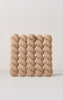 Most of our yarn comes in hank form since it’s more suitable for transport and storage. They can get a bit twisted, or ’tangled’-looking in the process for several reasons, the main one being wool fibres are structured in tiny hooks, so it’s their nature to easily get caught on each other when handled. Another contributing factor might be a small residual amount of fine dyestuff particles, especially with naturally-dyed Harvest line.