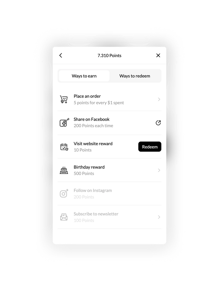 On the “Ways to earn” page, you’ll see many options available. You can earn plenty of points through every purchase, social media shares, newsletter subscriptions, and even on your birthday.