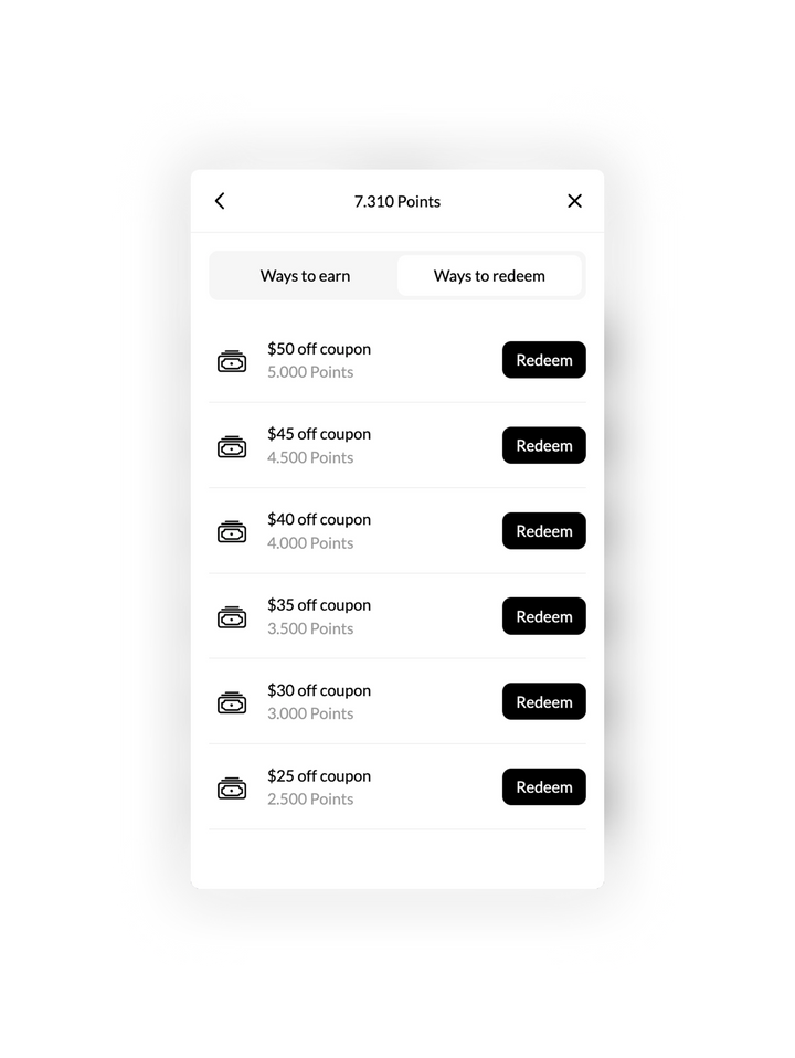 If you scroll down a little within the Loyalty window, you will find the “Ways to earn” section, where you can see how to earn points, and the “Ways to redeem” section, where you can learn how to redeem your points for discount coupons.